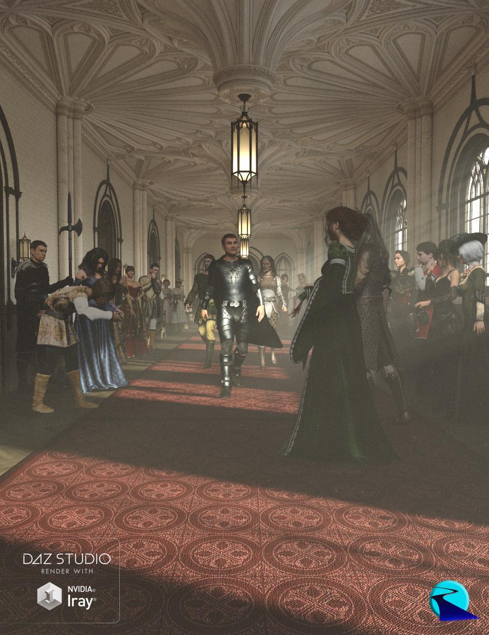 The entire kingdom has gathered to give obeisance to you within your court! The Now-Crowd Billboards - Court Life will make your throne room glitter with nobles, knights, clergy, and servants! Paint your great halls, royal gardens, and throne rooms FULL of nobles and servants, knights and bards walking, talking, feasting and plotting in high quality, flexible and easy to use billboards... perfect as a backdrop for the main action that you add!