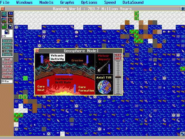 I loved reading about the oceans and volcanoes when I was a kid, so I spent a lot of time looking at the various graphs and stuff as the world I was in evolved around me. Then there was the oddball situations that would arise, oh boy that was definitely a highlight for me! I still remember Dinosaurs warring with their Human neighbors in one playthrough, and the two Bronze Age civilizations kept at it for a while until some carnivorous plants developed sentience.