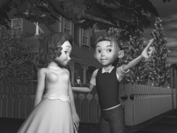 Here's an oldie where I recreated a scene from one of my favourite films with both of the toon kids (Sadie with the Sadie 16 morph) playing the lead roles (original versions) and Gramps back on the porch.