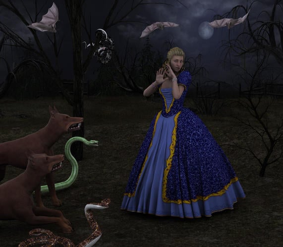 Also Used: Pen Hair for Genesis/G2F, Jewelled Finery, Dark Trees Pack 1, Bat Silverkey 3D