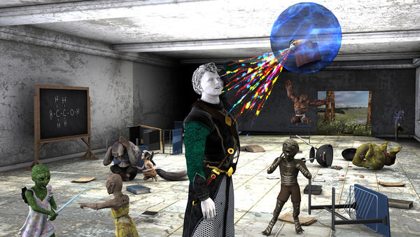 Also used: various Hellfish Studio shapes and xenoskins (Rendo), Genesis troll, Skullcrusher Ogre, Infernal Behemoth, Sickleyield's Fantastical Feet and Hooves, Fantastical Horns and Small Wraps (all from Rendo), Regina Malorum hair, Summer Dress, Y Dress, and K4 basic wear. And books and papers from varying sets. And a hat from Hathathat, the divan from Feralfey's Classic Pinups, and a guinea pig from Most Digital Creations. Wow...