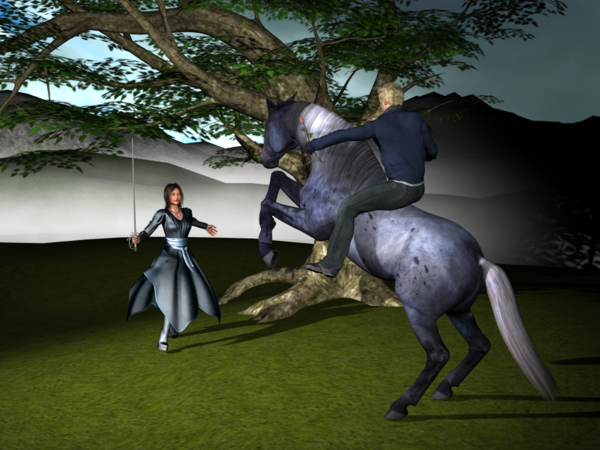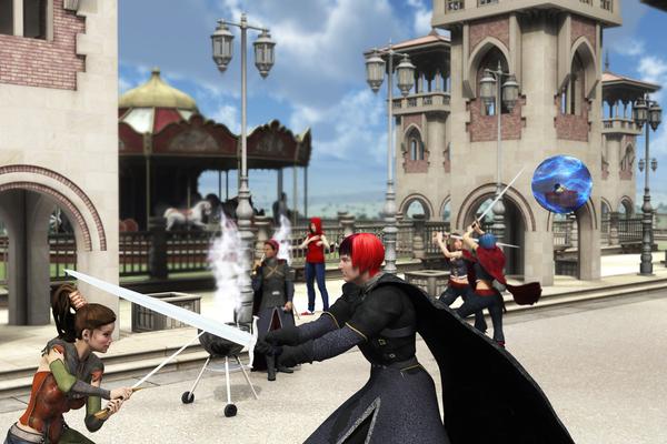 It was a fine summer day, and Mistress Morgan decided to head into town to see what fun she could find. To her surprise, the local fighter's guild was holding a street faire. She spent time watching the swordplay demonstrations, and the fighters were even kind enough to prepare her a nice grilled vegetarian meal.