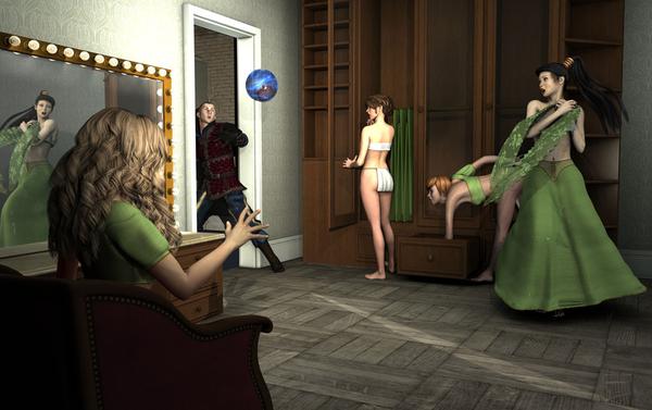 Mistress Morgan went to a fantasy faire, and discovered much to her dismay that the scheduled dancers were nowhere to be found. Her friend Michael was frantically searching everywhere. Mistress Morgan had a thought, "I'll bet I know just where they are!" So she hustled Michael off to where she had a hunch they would be. And she was right, there they were!