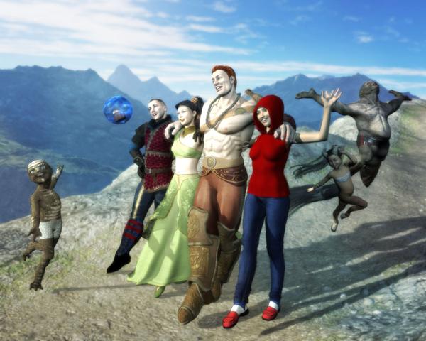 From the V5 Starter Bundle I used Victoria 5, Gabi (as "Gabe"), Pure Hair: Bubblegum, Handy for Genesis, V5 General Poses.