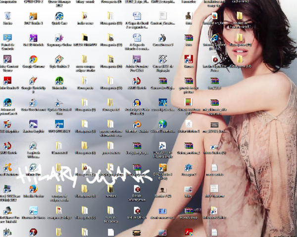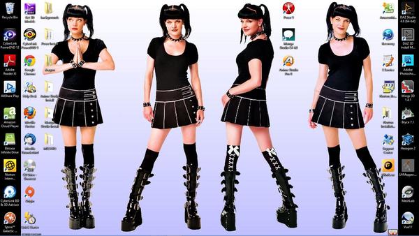 I have four different desktops on four different computers. The one at my office is usually the latest render I've done (that's office safe, that is.) The one on my rendering computer at home, on the other hand, is an image of Summer Glau from Terminator- The Sarah Connors Chronicles. My netbook alternates between a photomontage of Max Max going to the supermarket (don't ask) and a shot of Kim Possible and Shego. Finally, my Asus Slate, which is basically a Windows 7 tablet with a Wacom Cintique built in, has an interactive pond image/screen saver that ripples when you touch the touch screen.