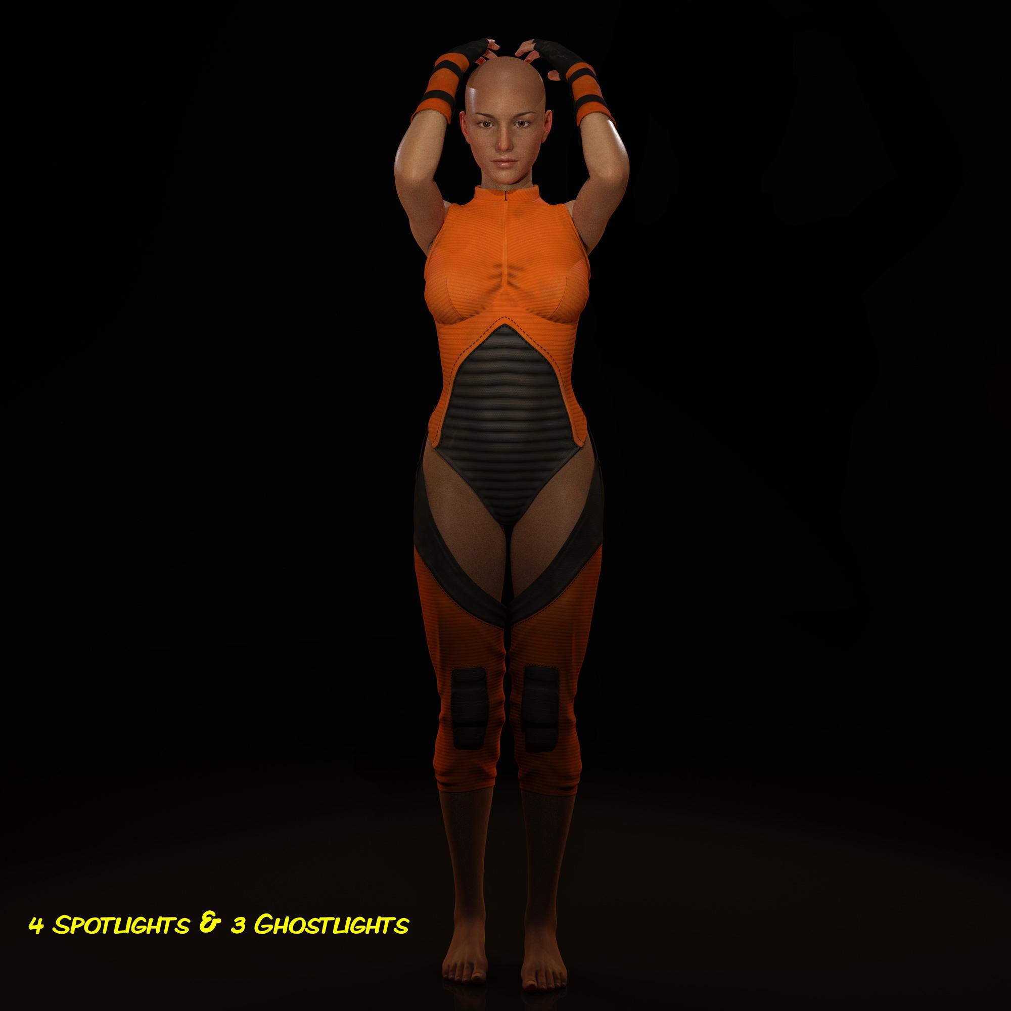 Unfortunately, with lights, there's no fast solutions when you go outside the realms of pin-up presets. The ghost lights usually just help to lighten up the environment, but their light is flat and has no shadows. If you want definition and shadows, spot lights are usually a good choice, but it need practice and experimentation to see how they work. There are as couple of great webinars in the store that give you a good idea on how to light things.