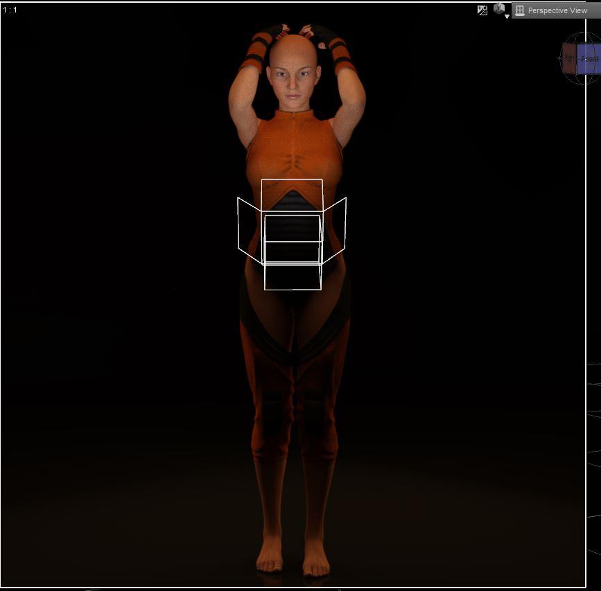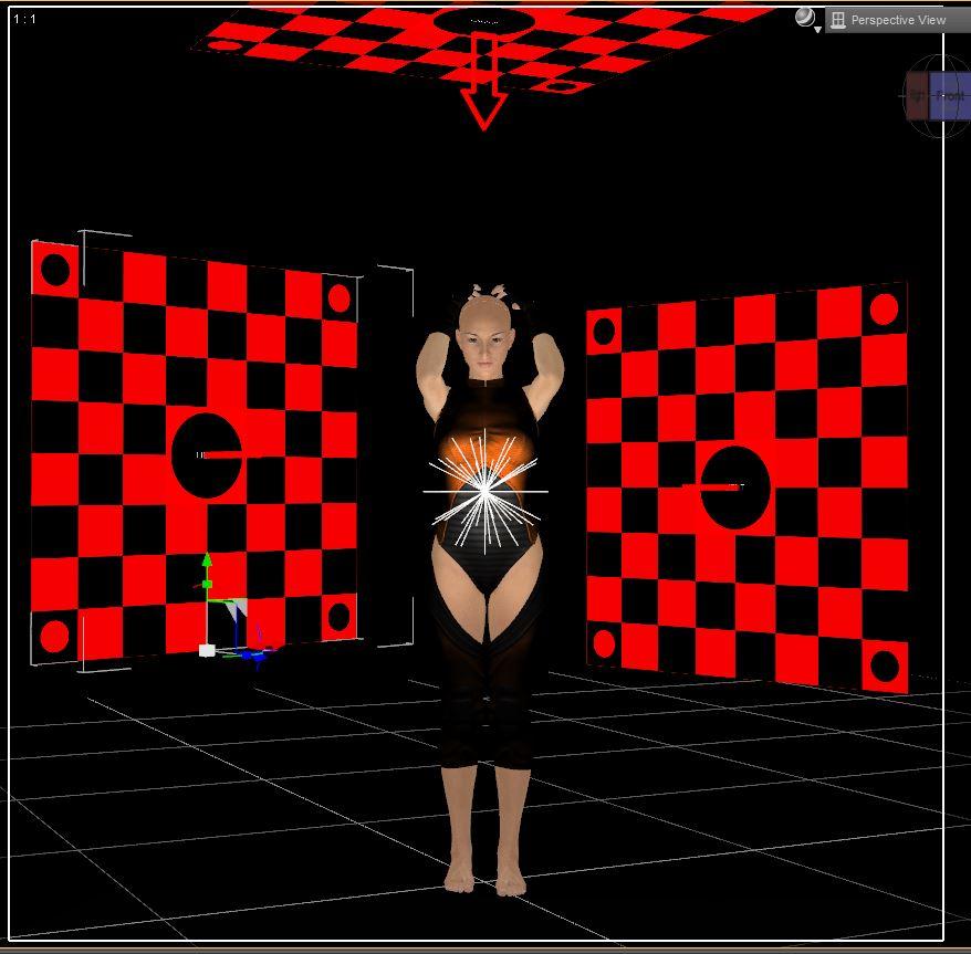Now, I've thrown in 6 spotlights instead of one; as you can see, I'm using various angles from the front and the back of the character.