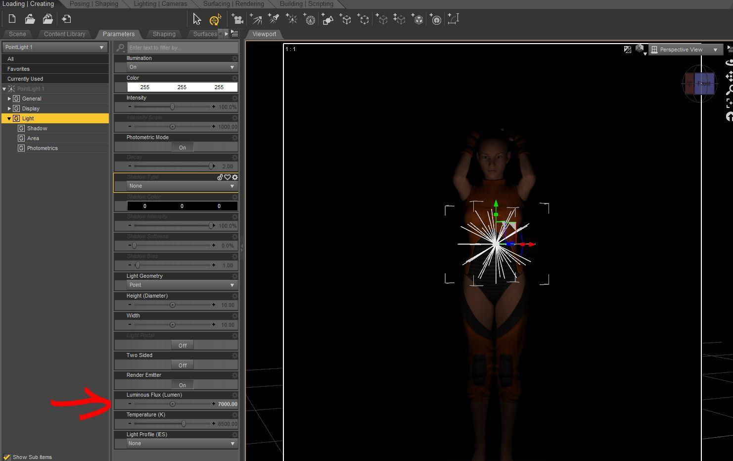 In the second example I've used the same technique, but the result is awful: she's so dark! I've tried setting higher lumens for the point lights, but then it looks artificial! I've tried multiple times to use ghost lights again on her, but then she looks "flat".