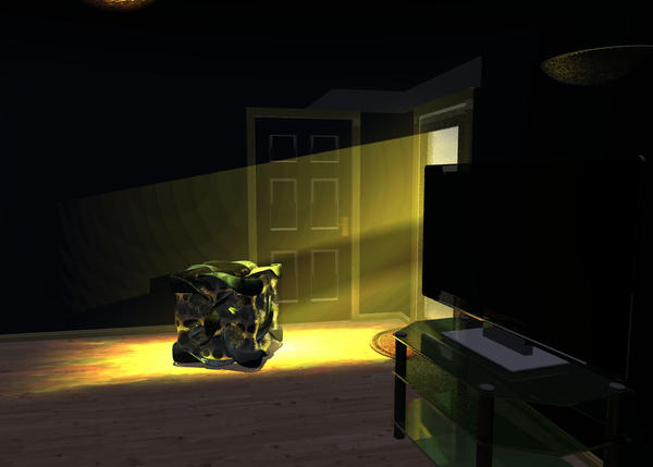 Finally I added a single regular radial light set to give out only the slightest lighting to give some detail to the inner walls of the room (without this, all the walls, ceiling and floor are pitch black).