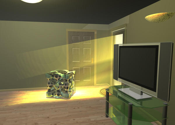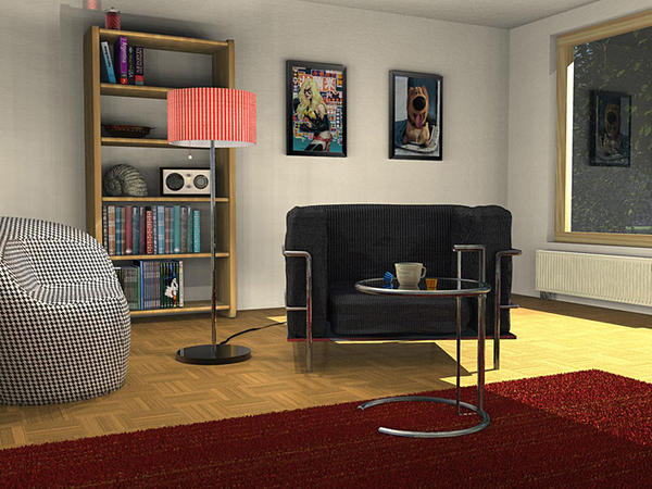 The second scene with the living room uses a fill light. I try to write down, what I know about the single fill light options. It may be a bit simple, but nevertheless I hope I can make myself clear: The "quality" ruler determines with how many light sources the fill light is filled. The higher the value the less you can recognize them. The "bias" ruler pushes to light sources to the top of the fill light. The higher its value, the more light comes from above. The "randomness" ruler should spread the light sources in the fill light more randomly. My simple conclusion for this ruler. A higher value makes the scene a bit darker and the light a bit smoother. The gradient option is set due to a hint of Horo. To achive a very smooth light with nearly no banding, you should switch on "gradient" and change the places of the both gradient rulers to the opposite. And the last point. I have learnt, the fill light should be nearly as big a the room, but should not touch the walls nor the ceiling nor the floor.