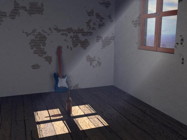 Banding: I tried to find out something about the banding and made therefore a scene with sunlight through a window. I am afraid I did not get noticable banding. I used a cube dome light and a cube for the sun beams.