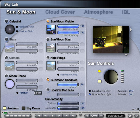 Here are some of my latest renders of sunlight effects, in Bryce7 Pro: