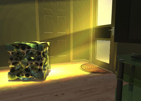 The lighter versions have a radial enabled in the ceiling light in the centre of the room, which although lightening the cube itself very nicely has unfortunately also lightened the shadows under the cube, I might try a negative light under there...