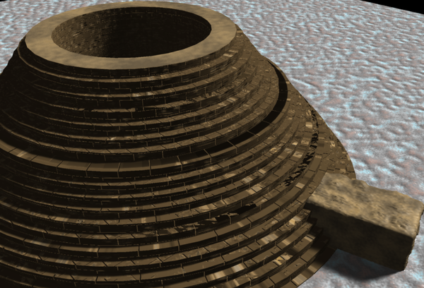I'm working on a set for the climactic scene in Ray Harryhausen's, Sinbad and the Eye of the Tiger. The central stair feature is a spline model and the pedestal for the guardian/Sabertooth cat is a vertex cube that I displacement painted. Sgaders are a work in progress.