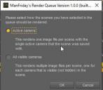 And yes, you can set any directory and file name you like for each render. Except for "All visible cameras" mode (see above), in which case there's several renders per scene: then the images for all cameras of one scene get written to the same directory, with the camera name appended to the file name you have specified.