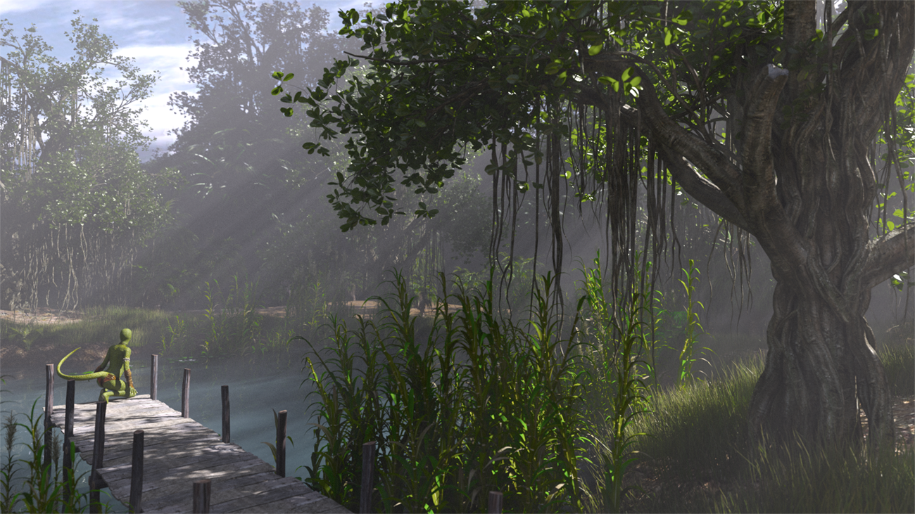 Awesome! You've shown how the sun can shine through and still light the scene.Thanks for posting Oso3D