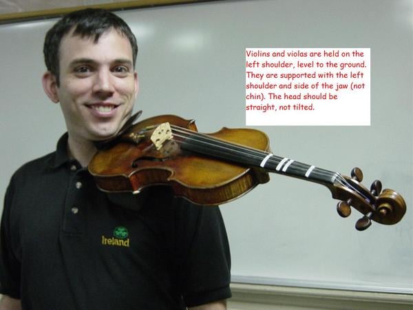 ...having studied the instrument in RL the chin and shoulder were the primary anchors so the hand could move more freely on the neck. You should be able to just hold it there using your chin without support of the arm.