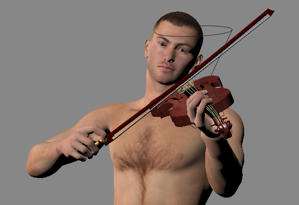 Parenting a violin to the collar gives me an IK chain from hand > fore arm > arm > collar > violin. Then I need an FK chain for the hand from collar>shoulder>forearm>hand>fingers_on_strings. But I also need those fingers in the FK chain to follow the violin's neck, can't wrap my head around how right now heh *scratchy scratch*