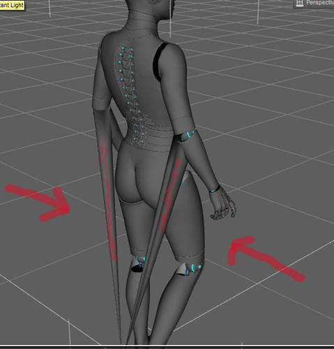 In viewport, character appears with two extra pieces appearing from the elbow to