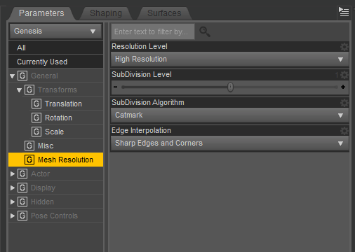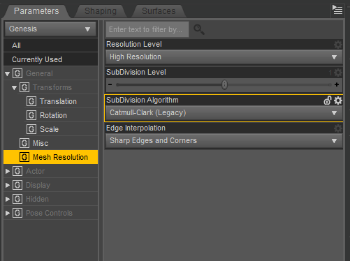 Problem with this Jaderail, is when you click on the Noggins macaw and go to the Parameter tab under mesh resolution the only thing that show up is base, none of the other choices .....I think it's cause it's an older item .......and doesn't have the options the newer stuff has.If you set Parameters to Show hidden Properties it will show this on all meshes...