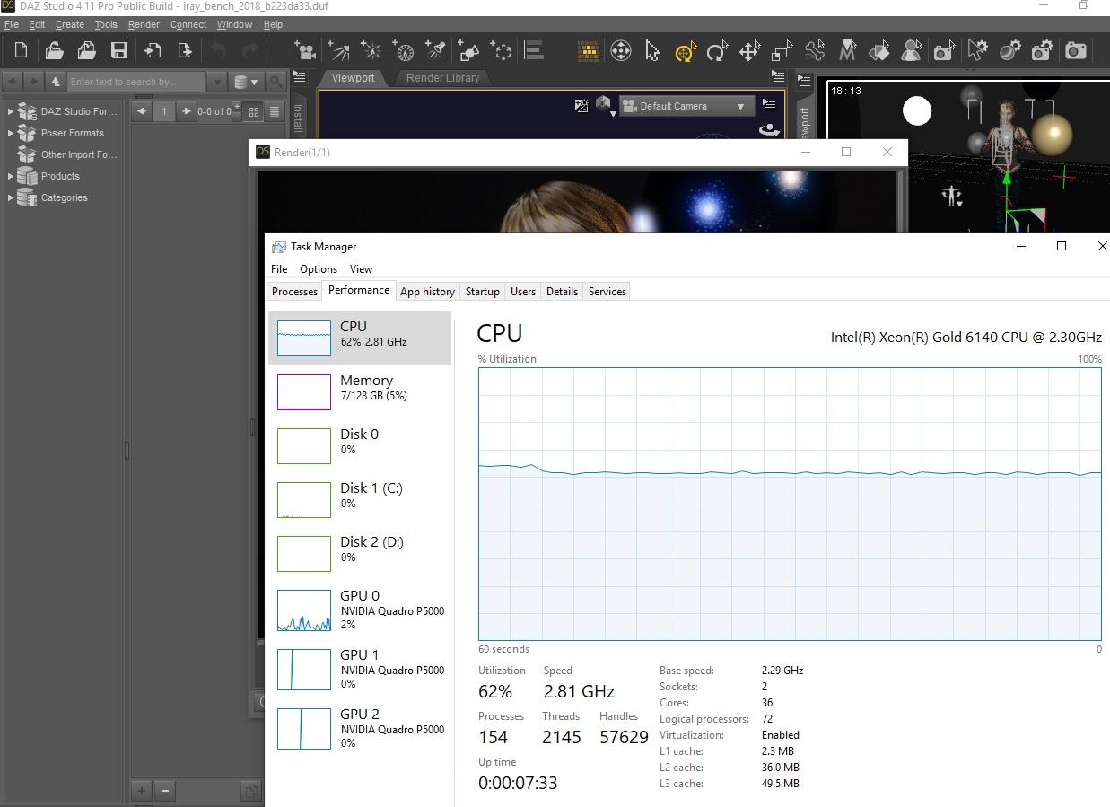 Interesting. If - while rendering - you right click over the CPU utilization graph in Task Manager and select change graph to > Logical processors you should be able to see exactly how many logical cores/threads Iray is actually using while rendering. SInce you have a dual Xeon setup you should also be able to select change graph to > NUMA nodes - which should show Iray usage split up by physical CPU layout (as I understand it a dual Xeon Gold setup has 2x2 = 4 NUMA nodes.)