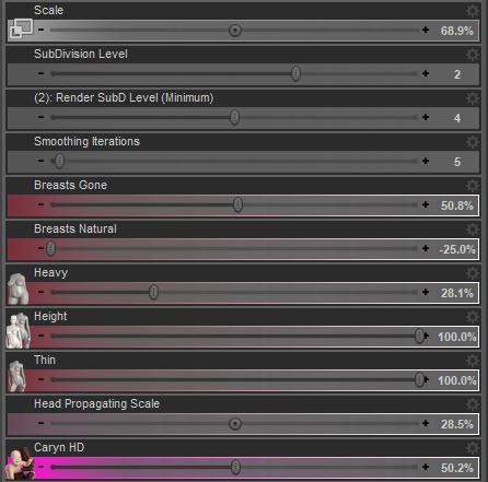 Here I dialed in 50% Caryn (mixed with Growing Up) and made the hands a bit larger. Caryn essentially allows adding more or less 'baby folds', although I agree a separate head/body morph would be nice.