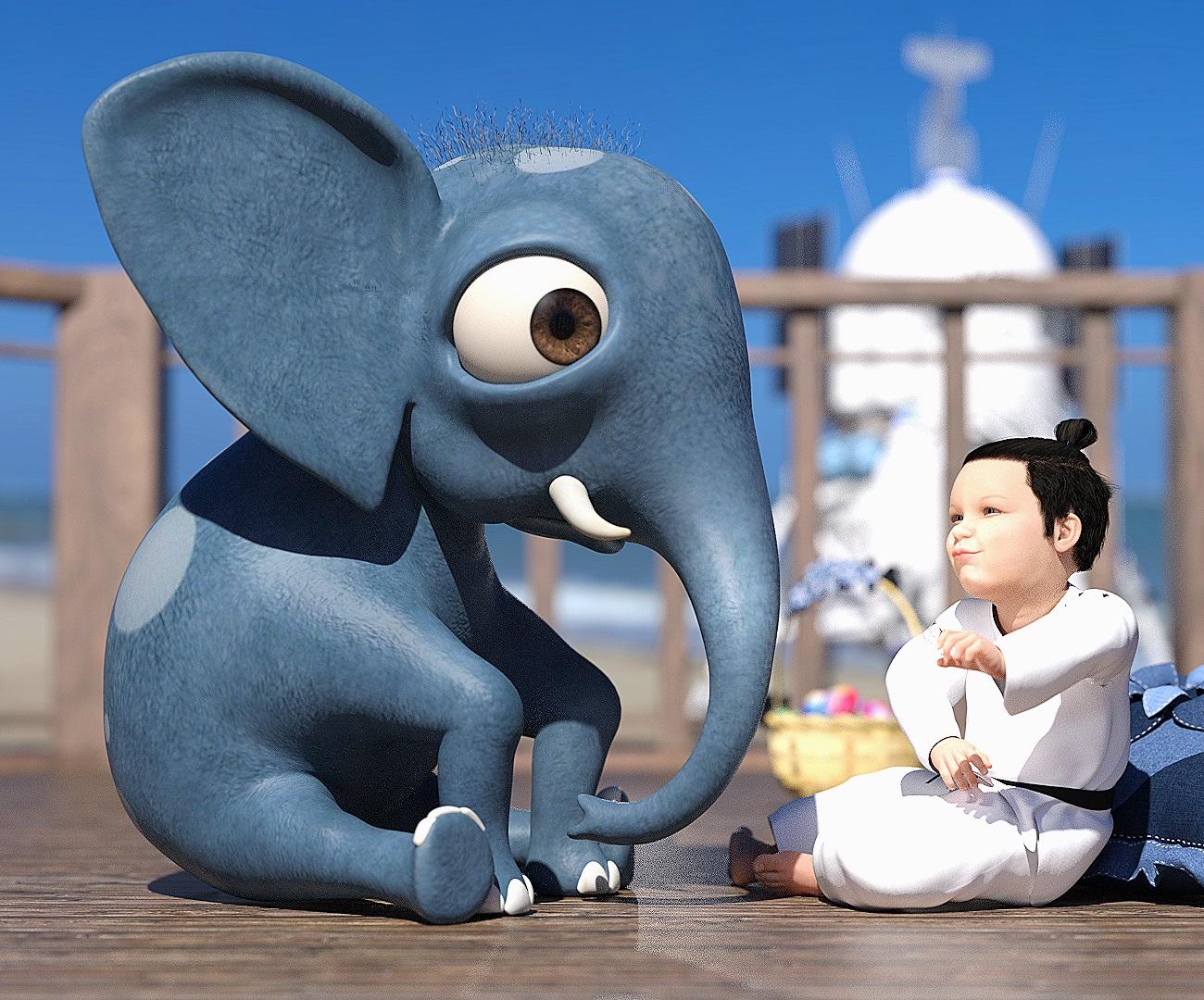 Here is a picture with the very old Millenium Baby 3.0, and a dial-spun Genesis 8 Male combined with the growing-up morphs. Still no newborn, but a toddler. Totally made without the new baby8 .