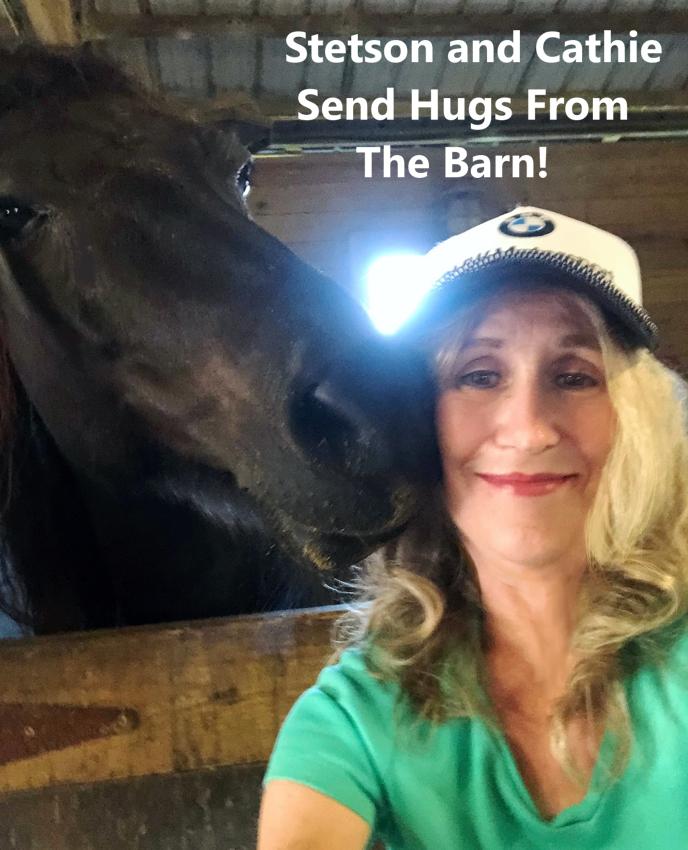 Stetson was busy wiping his bottom lip on my hair. He'd just finished eating his pellets, which I wet so the supplements stick to them. This was yesterday morning.