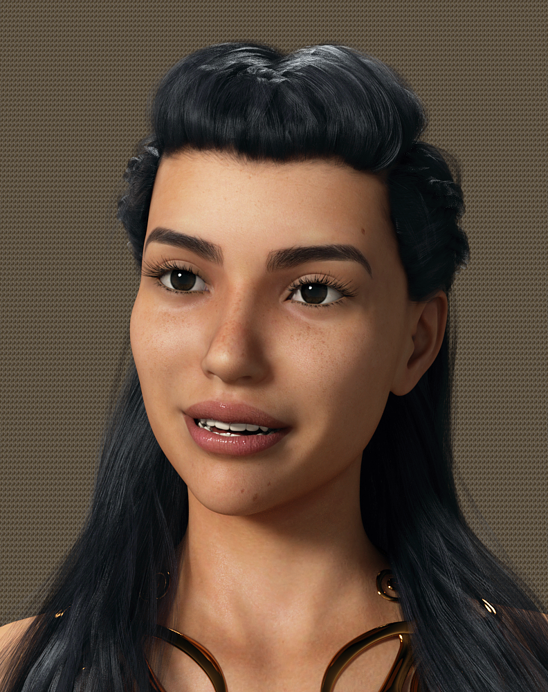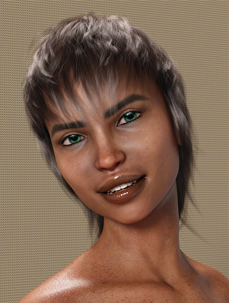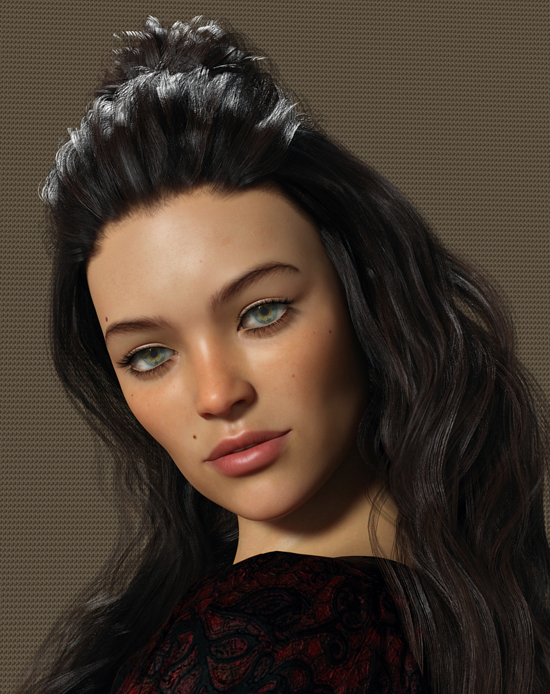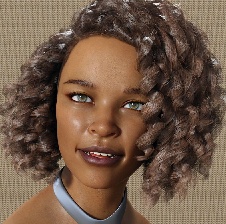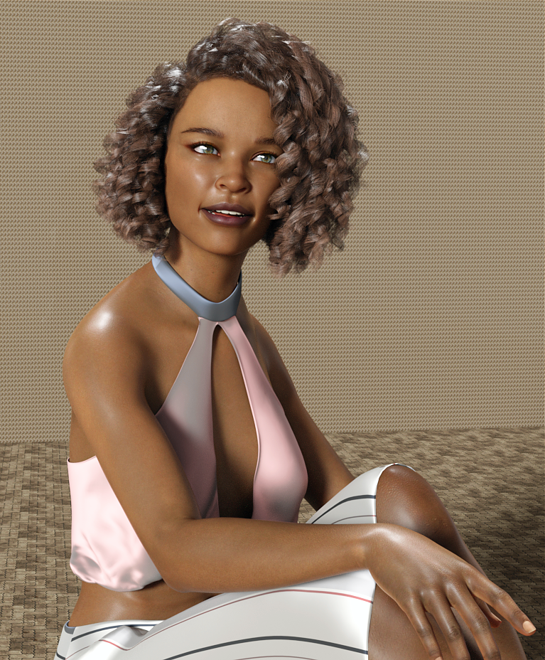 As dark as her skin is, she is of course difficult to light. I've used the Painter's Lights (no longer in the shop) and for the close-up fiddled with the exposure in the render settings.