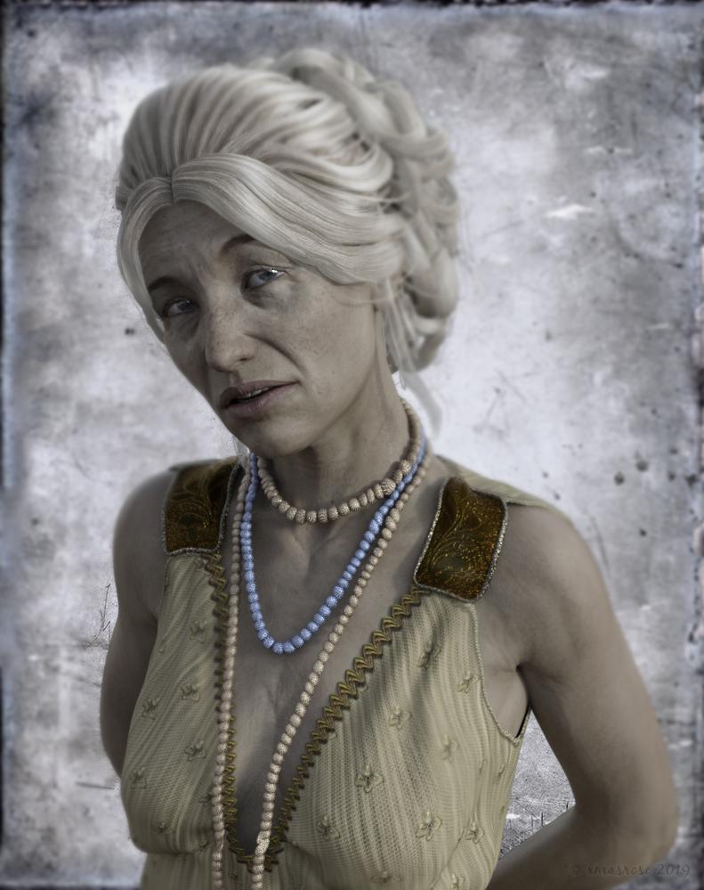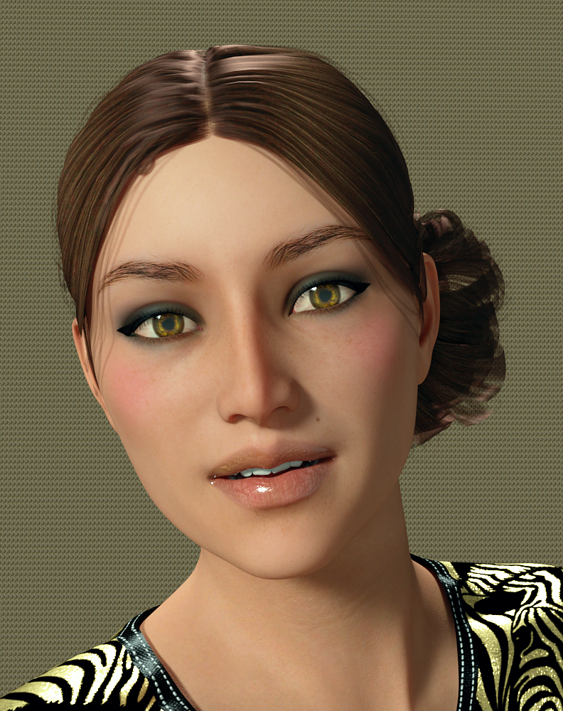 No one else has an image of Ginevra? Okay, here she is, loaded straight from the character menue, and unmodified except for a slightly asymetric smile (I added a little 'Side to side' morph).