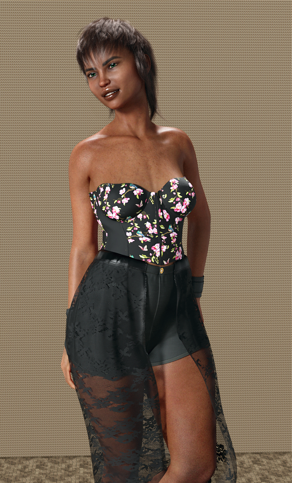 Riviera Hair (Gen3/8F)      dforce Corset Skirt Outfit (G8F)   NOTE The textures are wrong in Content Library-  they are NOT under Corset Skirt Outfit, they are separated and listed as Corset Skirt. I didn't even see them until I searched for Corset Skirt Outfit in the Product Library. and saw I owned the textures.