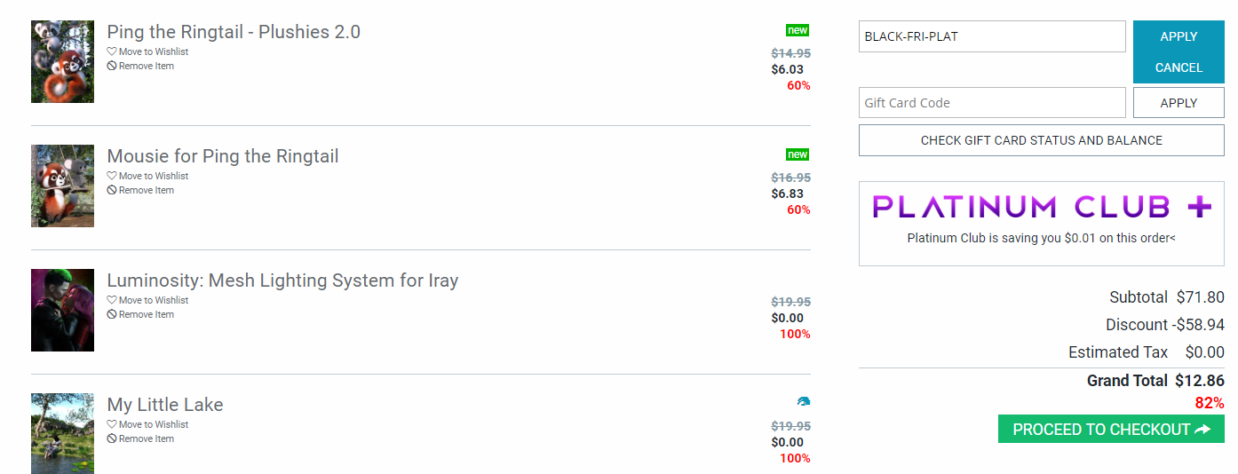 Put two of today's new releases in your cart to get the extra 20% off. Then add a Select DAZ Original as per yesterday's Black OPs sale to get another 20% off. The result is 55% off today's new releases.. Now apply the 'It Pays to Be A PC+ Member' purple banner coupon to bring the discount on the new releases to 60%. Also there are some free items in the Select DAZ Original group that work.