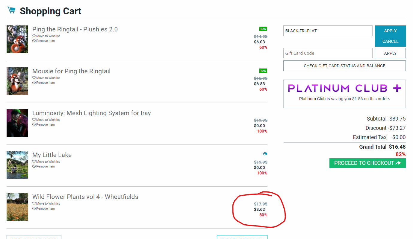 Never mind I figured it out altho I didn't get the part of freebies from the Daz original group that would work with today's sale to drop the price. Oh well I did get the new plushie, not sure what I may need it for lol