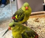 I had put a 24 hour hold on him (the birdstore is where I got my Kakariki) while I did my research. Then I got him today! The Regent Parrot breeders are mostly on the West Coast, there's literally a few in California and one in Washington. The East Coast Georgia breeder retired, and the Florida breeder is hit and miss with having any. The Regents are the gentle, quiet parrots, with a reputation like the Kakariki for having pleasing chatter, no screaming- and no biting. These birds simply won't bite. I've got mine in the master bedroom to quarantine him for at least a week, and he's in there snoozing.