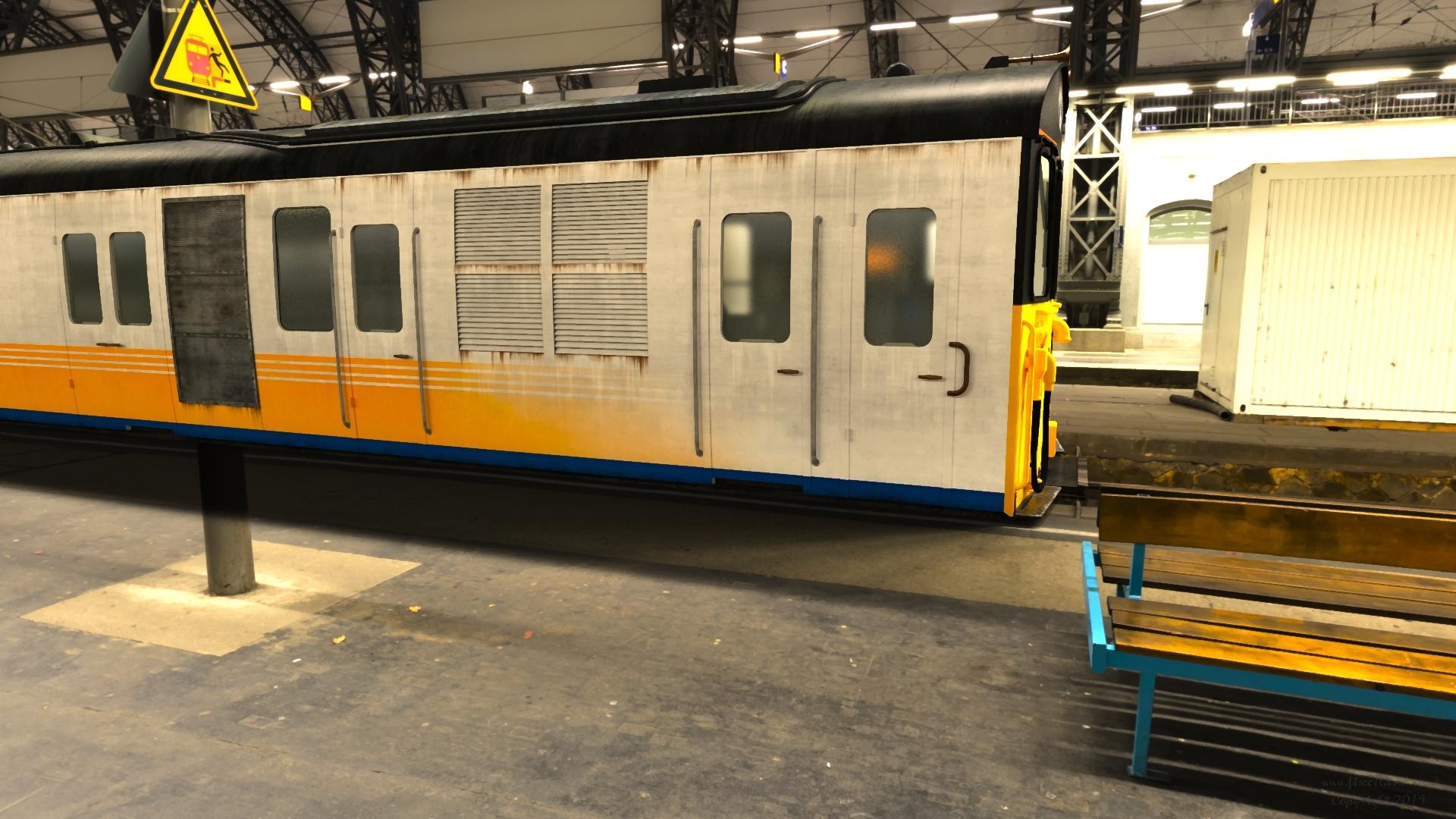If you look at the top right of your Viewport you will see a small box split diagonally from top right to bottom left with a + and - sign on each side and a dot at the top right corner. If you go to the Raw Settings Tab and under Advanced there are three settings, Exposure, White Balance, and Both. For this I had mine set to both but I chop and change between the single ones mostly. Click on this and the cursor becomes the box, move it over a part of the render in the Viewport that you want white or bright, light grey works or I sometimes just put a white box in and use that, making sure the little black dot is where you want it and click. What this does is set the White Balance and or the Exposure. If it doesn't work as expected, it makes the image too bright/dark or gives it the wrong colour cast, then go to Tone Mapping and set the changed entries to default, don't use the default button at the top as that resets all the Environment settings. I used the side of the train for this one just between the first door and the grill for the engine. You can see the difference between the previous images and this one.