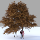The product is driven by a script that you can find in either Smart Content (under Props / UltraTrees - Realistic Tree System / Utilities and is the only script with an image in the icon) or in the Content Library (under Environments / Landscapes / UltraTrees). Run the script and you first choose a type of tree (each specie has a number of different sizes shown via icons), then a trunk texture, and finally a leaf style and season color (various tree types can have different species available so there are for example burr, sessile, pin, and willow oaks). You then click on the create tree button and soon your tree appears. It normally shows only the trunk, limb and branch structure which is enough to compose your view but you do need to be careful as leaves may cover something you want shown. There are also advanced options but I didn't give them a try. Iray and 3DL materials are available and you can choose which to use in the script. Once a tree is created, if you select it in the scene pane the script will recognize it and you can make modifications.