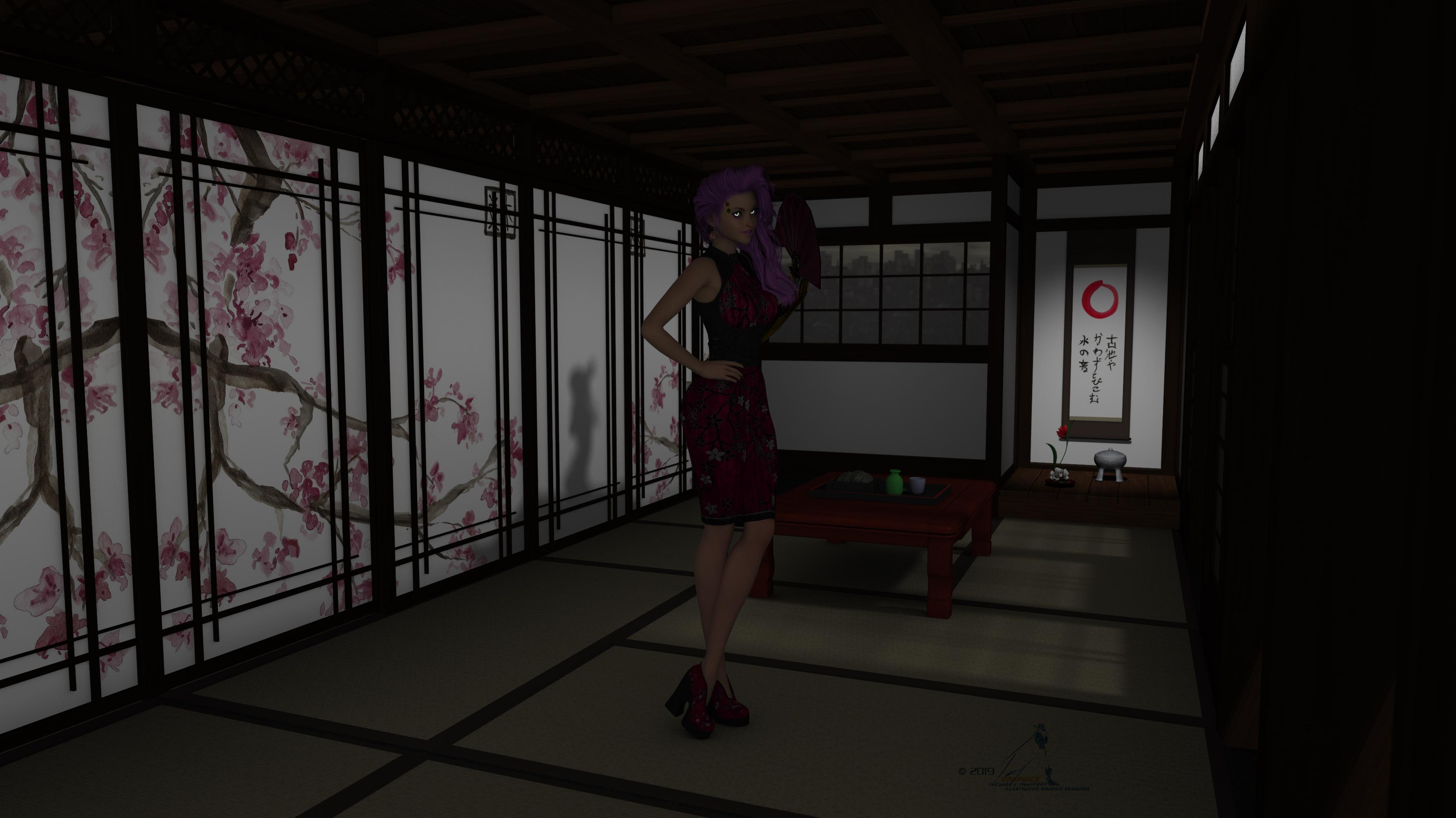 Did another Aiko 6 piece. This time, she's wearing the Cherryblossom dress for G2F, and End of Summer Hair, along with the previously used Cyberpunk for M4 and Cyberpunk for M4 Expansion. I also tried a little experiment, and discovered that the eye textures for Gen 4 characters still work on G2F, so I used the eyes from HFS Evan for M4 on her. It actually works.