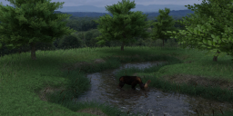 Besides the assembled field environments, the props used with the fields are also available to add to one of the field presets or use with other environments. These include the shelter, components to make a barbed wire fence, several stone wall segments, and five trees. The trees are among the better ones I have seen.