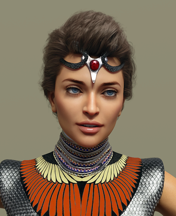 I'd featured her before, her mouth is easy to pose and fluid. The lips are a bit too smooth, I'd increase the bump. (See closeup, render 3.)