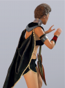 The painted orange and yellow on the chest piece is a different approach, it strikes me as a rubber piece that has the feathers/ design painted on it. It does give a contrast to the neck piece which is textured. For the cape, here's a tip- there are adjustments as usual in Parameters, but check out Scene also. I showed the cape from behind just to show you how it looks if you want it smooth and outward. I used both Scene and Parameters. The Scene bones will be labeled Cape 1, 2, 3 (or something similar.)