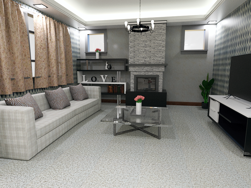 The Tesla rooms look very well lit. I noticed a couple strange things. The living room chandelier has bare bulbs, and the windowsills cut through the curtains in living room and dining room. Is that the way the product loads? I see the bare bulbs in the promo images, but the promo curtains look OK.