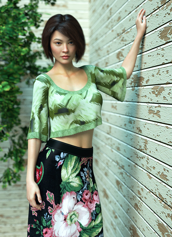 The Studio Drapes Base Pack has the studio walls, and I just used shaders to get the pattern behind her. (Large tiling) It's Architectural Iray Shaders
