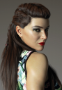 First one, with makeup (note the liner) and dark lips, second one more natural.