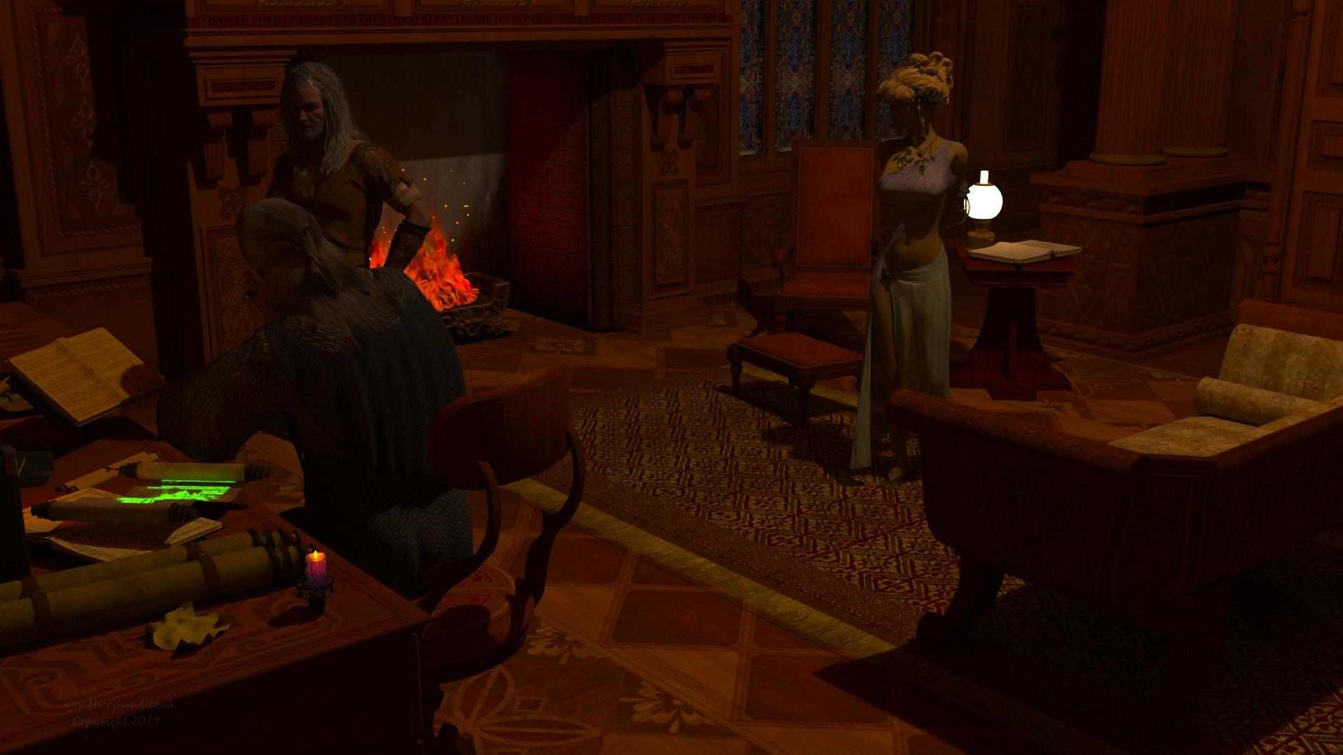 Another old set, The Study. Again I ran the Iray Uber shader on it and then tweaked some of the surfaces. The only light was the small table lamp so I added a Point light near the ceiling.