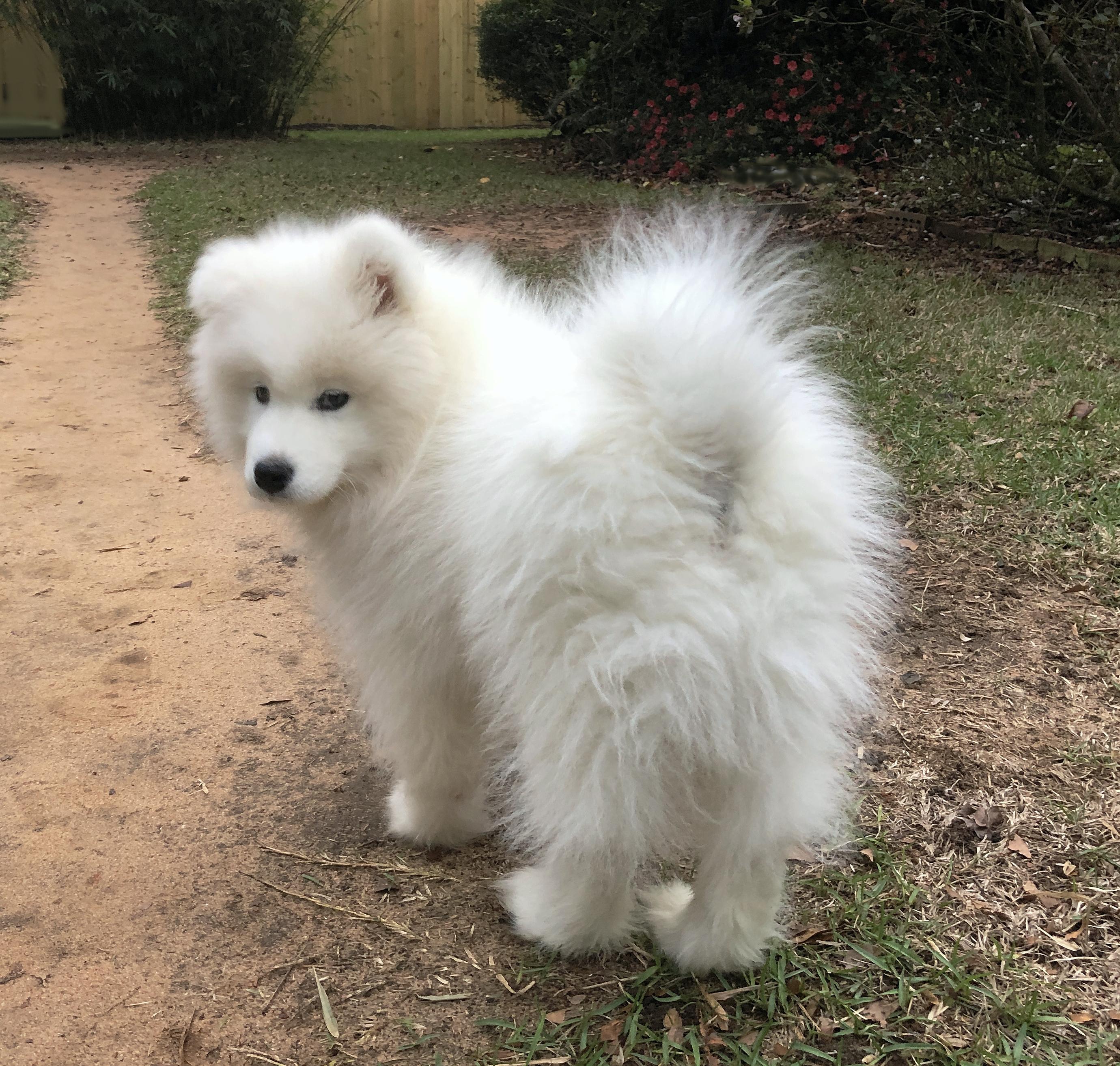 Talk about fun, my niece mentioned she was getting a puppy too- a Goldendoodle (which I had actually considered but I love Samoyeds more) so she did- and so did my sister! She got the brother to her daughter's dog. So we all three have PUPPIES! Ci Pwff was born late November, theirs in January, but they are bigger dogs so about the same size currently I think.