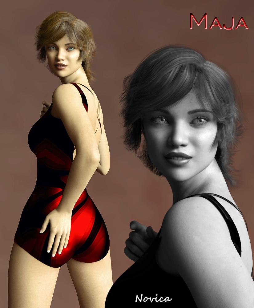 Hadn't used ColorWerx in awhile, it's my favorite hair shader. Maja is sold elsewhere, and her chest was greatly reduced. My Maja frankly looks so different than the promos at Rendo- doesn't even look like the same person! Reminds me of Barbie Benton.