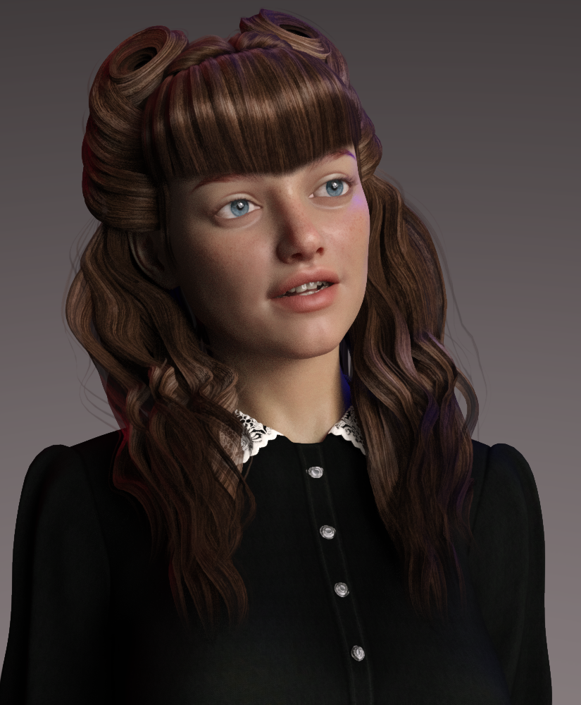 Render with the new Soft Curls by ChevyBabe25, and some older products Dorthy Dress using Unique Fabric Shaders.