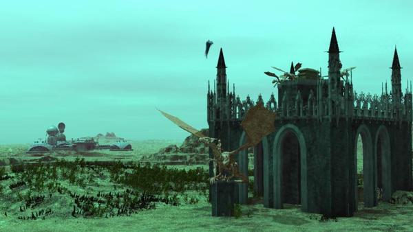 I thought I would go underwater. With the Family Grave and the Hatchling, I thought I would go with a monument of some sort that was now under water. I used Dragon Bridge, and I also created a statue of a dragon rider.