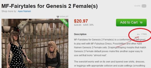 I searched "MF-Fairytales", "MF-Fairytales for Genesis 2 Female", "MF-Fairytales for Genesis 2 Female(s)" and the product ID "17589"