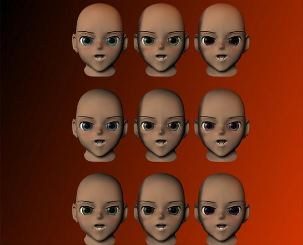 Figured I'd post an example of the various eye colours I've created as alternate textures... She also has 3 alternate skintones as well plus the default one....